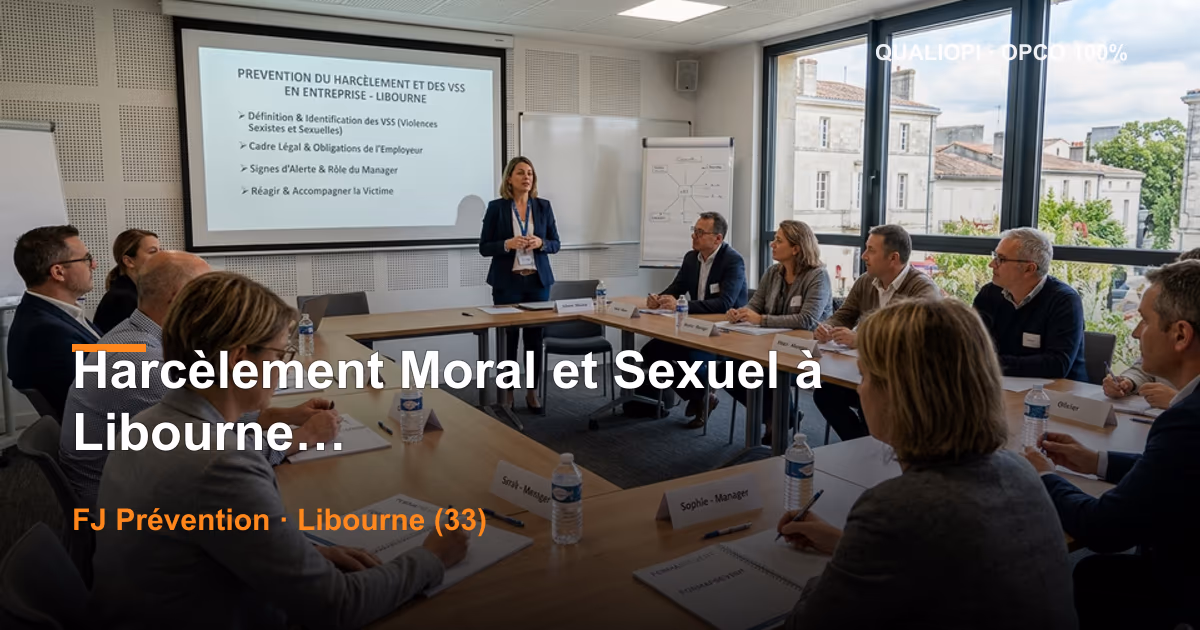 Formez vos référents harcèlement libournais en 1 jour — obligation légale >11 salariés, cadre juridique, procédure d'enquête, signalement.