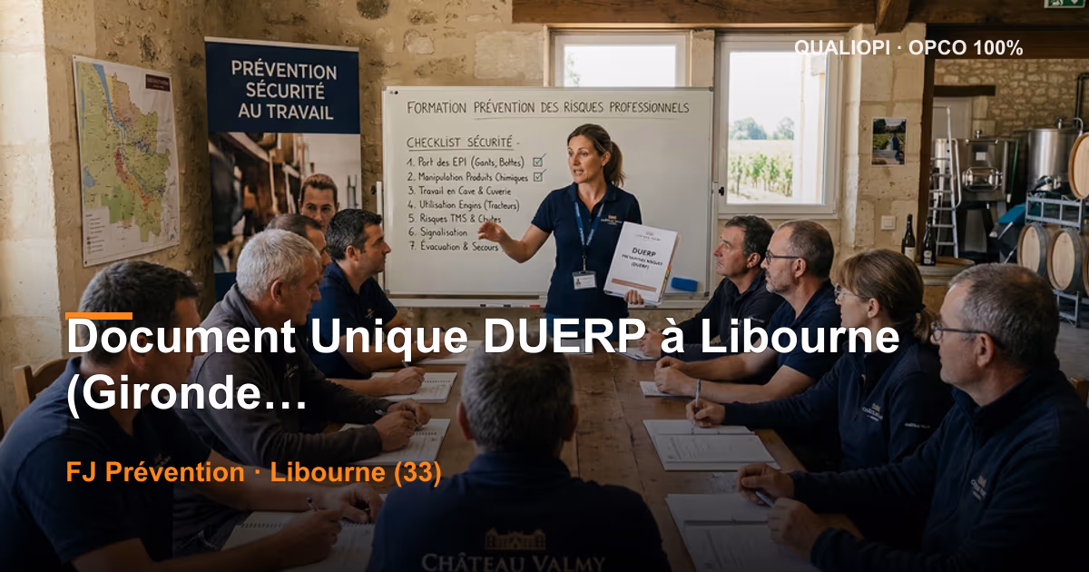 Sécurisez votre DUERP libournais en une journée — méthode, outils et livrables pour domaines AOC, BTP, logistique et tertiaire, conforme article R4121.
